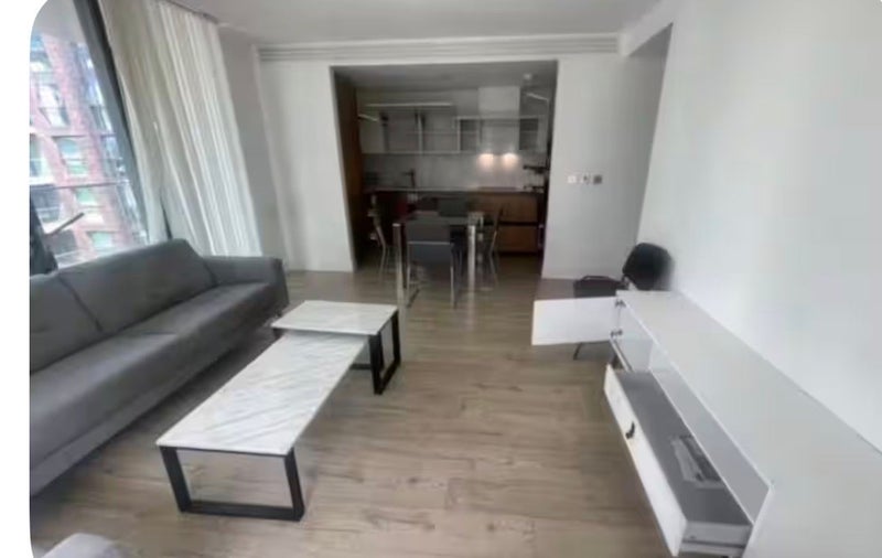 Shared kitchen, living room and balcony.