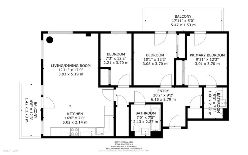 This 3 bedroom flat has 2 bathrooms