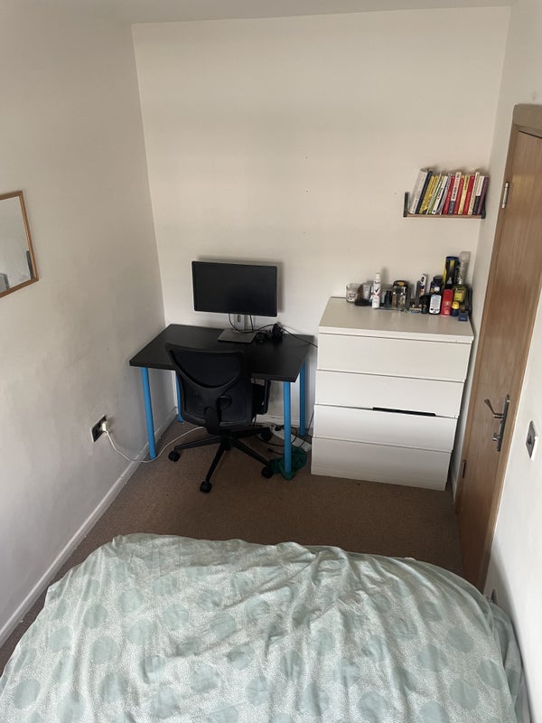 The room is available from the 15th March 2026 (possibly prior to this) and comes fully furnished with a bed, mattress, chest of drawers, and wardrobe (not in photo), desk and a chair.