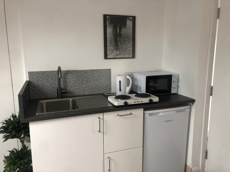 Bright, very spacious studio (at the top of family house) with bathroom, kitchenette and storage/ dressing room.
