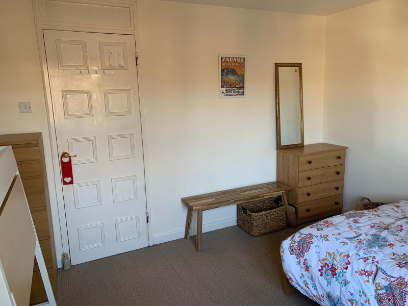 The bedroom available is on the top floor, comes furnished with double bed, bedside table, set of draws, black out curtains and a very large built in wardrobe just outside the room (so plenty of storage!)