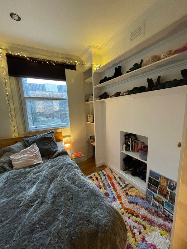 The room is furnished with a double bed and has integrated shelving, a wardrobe and good storage. The window faces away from the street and has a blackout blind - it's quiet, so good for a top night's sleep. I have a small desk that can be set up in the room if you would like to work from home.