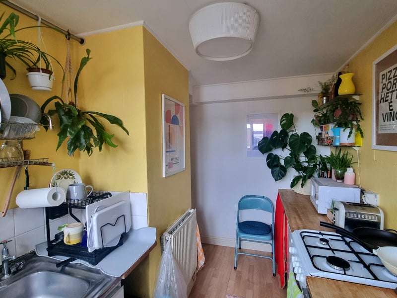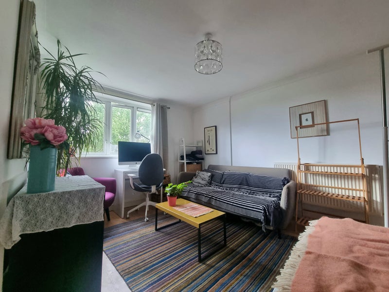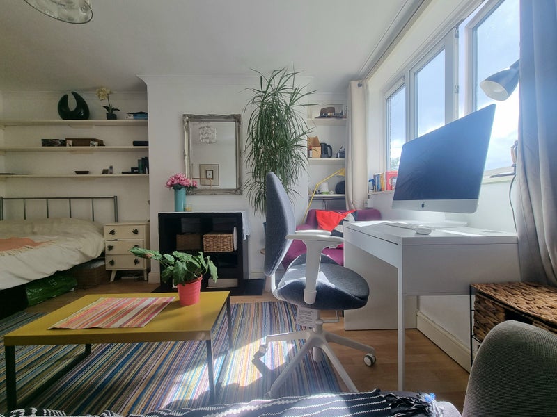 South facing, beautiful & spacious room in a 2 bed apartment (no living room). The views extent onto a primary school, trees, islington’s rooftops and all the way to Old Street high-rise. The room is 4x5 m². You'd be sharing with me (f40) and my cat Maxi. The rest of the flat consists of a small kitchen, corridor and bathroom with two windows. The bills come to £180pm, so the overall rent with bills included is £1130. The Council Tax band is C.