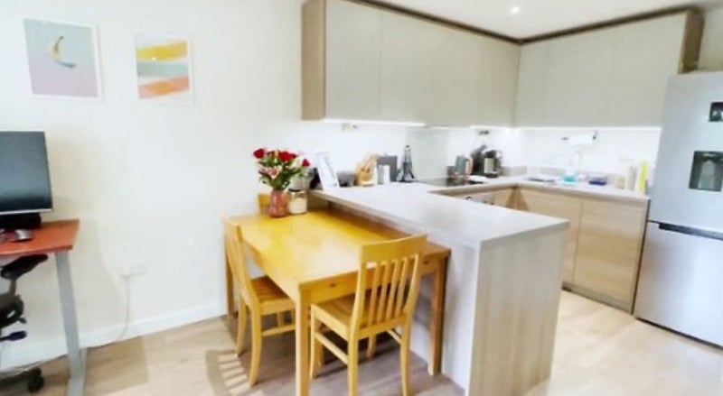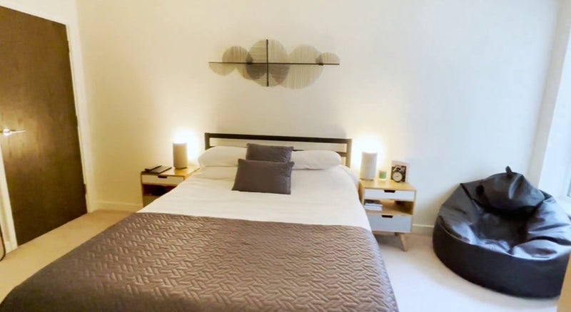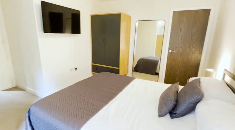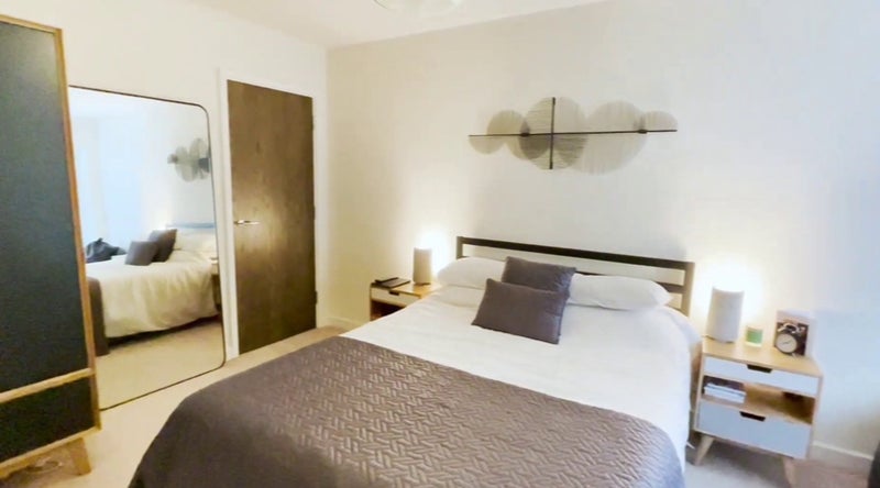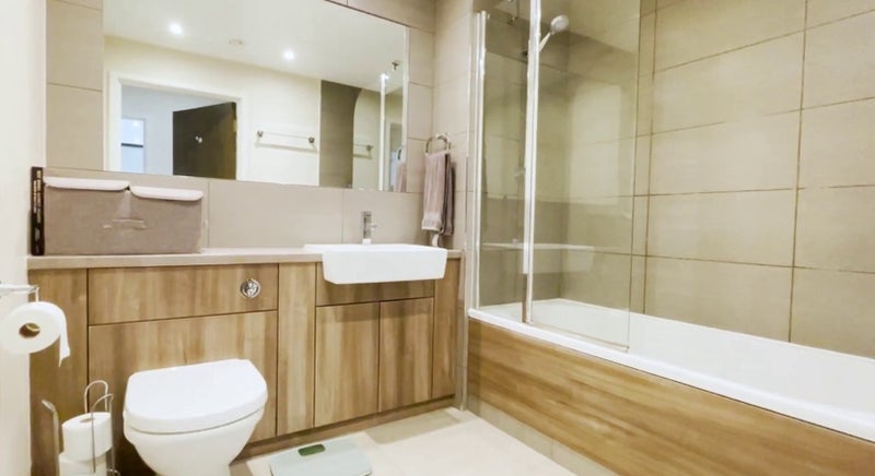 This en-suite spare room will be available starting from the 8th of March. It is furnished like in the pictures, has a large wardrobe, double bed with comfortable mattress, TV. It is located in a 2 bedroom, 2 bathroom flat in a nice looking development, really good transport connections.