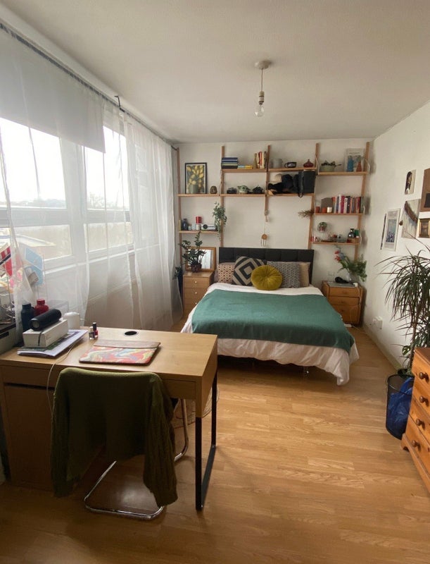 • Has plenty of shelves (kindly assembled by a previous flatmate) for lots of books and bits