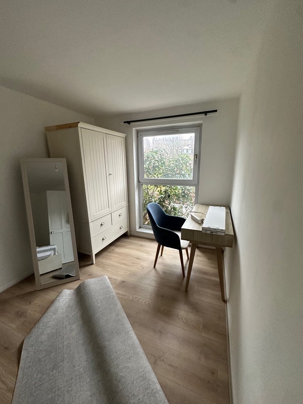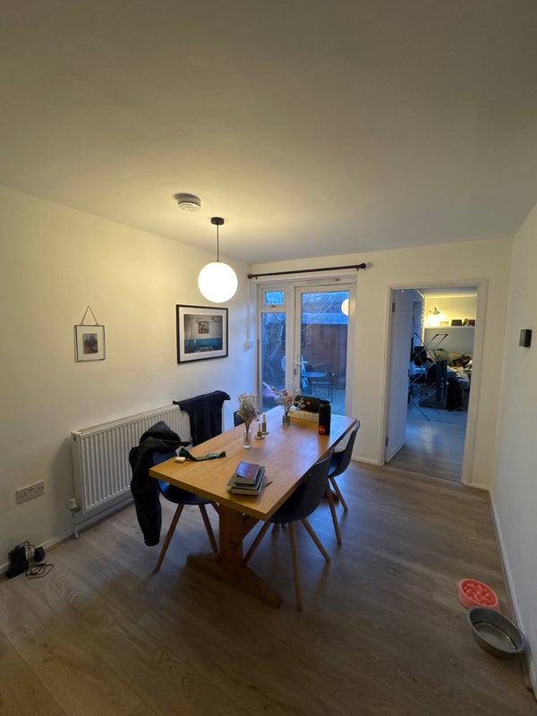 This is a 2 story flat near Angel station, with a full bath upstairs that we all share and a toilet downstairs as well. Full kitchen, dining room and shared living room. There is also a quaint private patio/garden stocked with a BBQ!