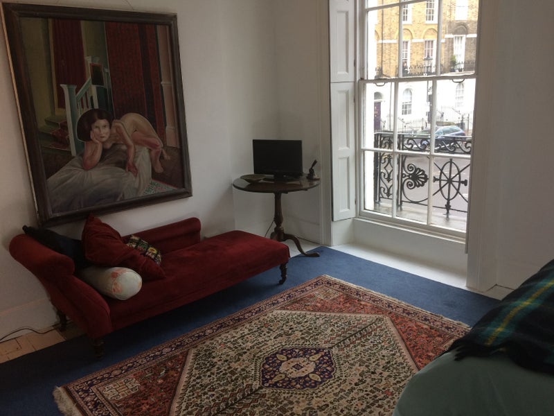 A charming room, overlooking the Square. Double bed, chaise longue, desk and wardrobe, etc, available Monday to Friday,