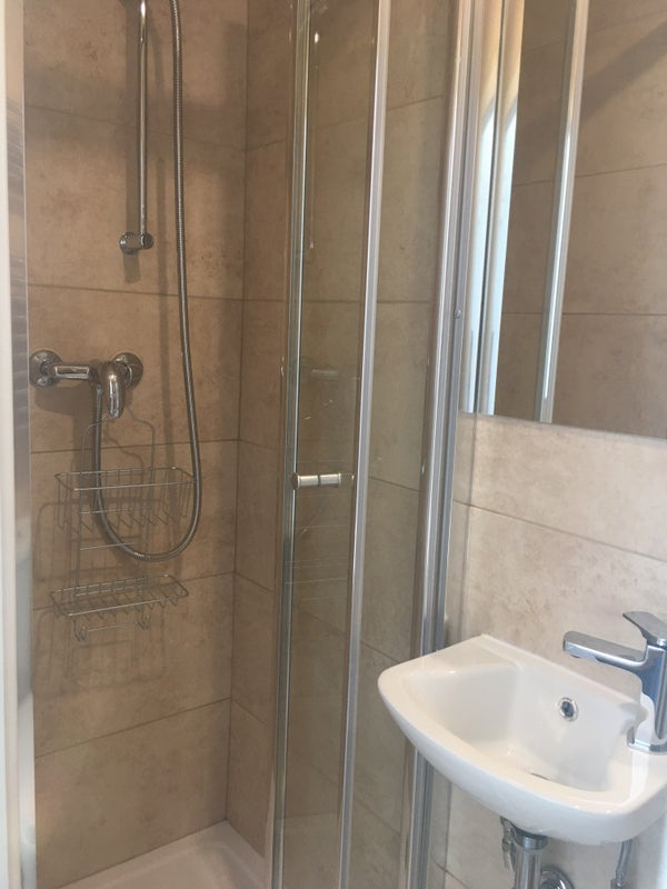 The studio with a kitchen is en-suite and re-furnished with shower, toilet and bed, mattress, kitchen units, wardrobes, fridge/freezer and washing machines