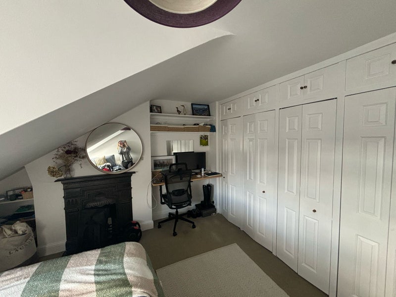 The living room and bedroom have original period fireplaces. However, the flat is modern and newly decorated with white throughout The large bedroom overlooks the front of the house with pleasing views of the street. It has a double bed, an ample built-in wardrobe and a fitted desk/dressing table.