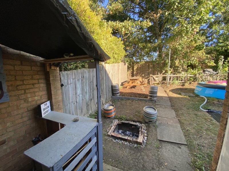 -Super cute garden with picnic table, bistro set, little veggie patch, fire pit, BBQ and bar