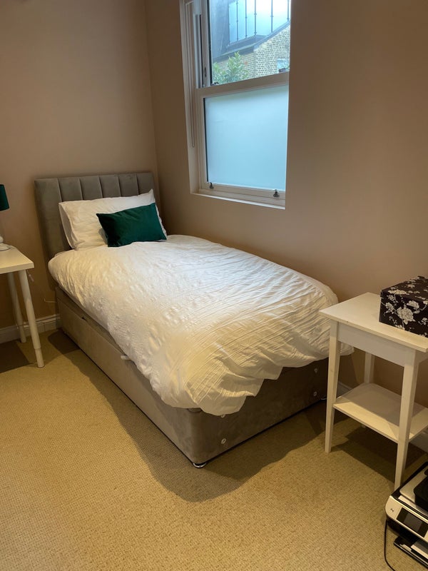 The room is a single bed with a chest of drawers you can leave clothes etc in for the duration.