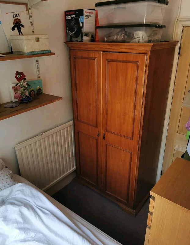 - The room is tiny, hence the unbelievably cheap rent, but it does have a surprising amount of storage (under the bed, big wardrobe, drawers, plus storage just outside the room). All my stuff will be gone too. The size isn't for everyone, but I've lived here happily for two years.
