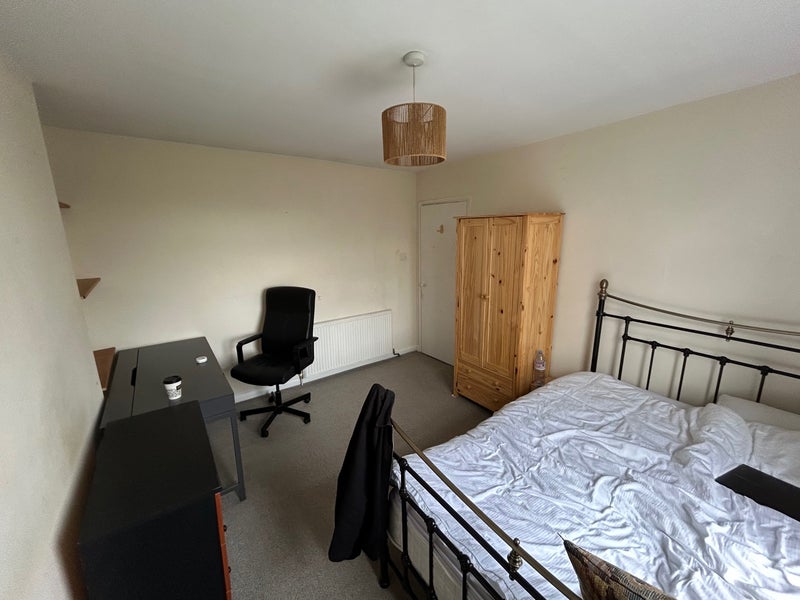 The room comes with a double bed, mattress, chest of drawers, a desk and a wardrobe. There is a huge window so lots of natural light.