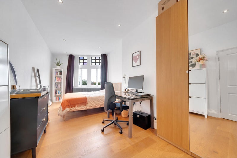 The room has ample space for a double bed, large desk, wardrobe and drawers. Windows recently double glazed, so noise level is really low from the road.