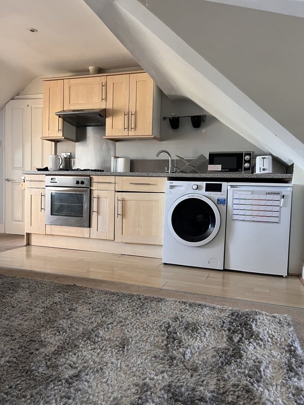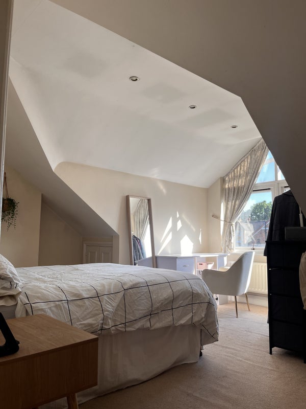 The room is spacious and comes furnished. The apartment has a shared bathroom and a nice kitchen and living area.