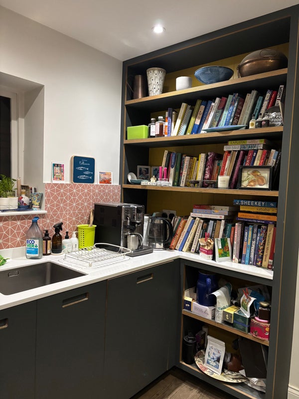 Large bright double room with its own desk and loads of storage & shelves plus own shower room on its own floor and recently refurbished. It is in a spacious and beautifully decorated Balham Victorian house split over 3 floors where the owner, an author and food writer and her partner live