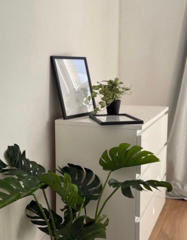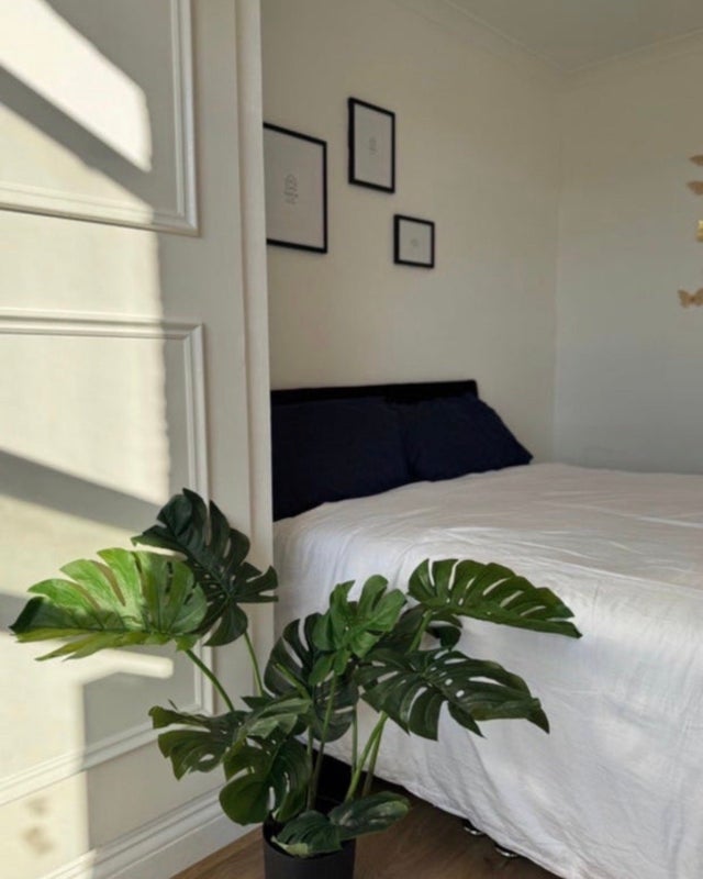 • Large window overlooking greenery, making the space bright and airy