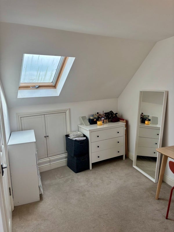 A stunning, airy loft space filled with natural light. The room comes fully furnished with a double bed, desk, and storage, plus your own private en-suite. Ideal for relaxing or working from home.