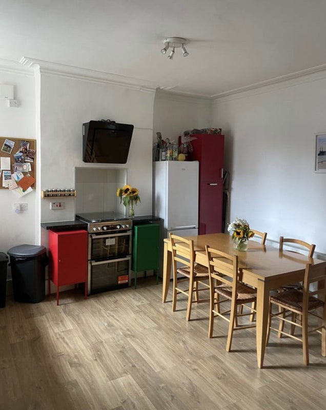The flat is great - we have a large shared living room and a separate kitchen and dining space. There’s a shared bathroom with a shower, toilet and sink. We are on the ground floor and have access to a shared garden.