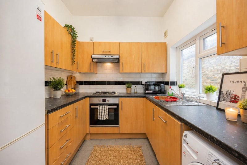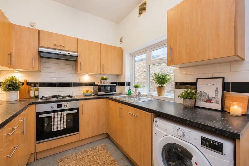 Balham station is 5 minutes' walk away (Northern Line and rail connections to London Victoria, London Bridge and Brighton) and there are loads of bus routes as well. All the shops, bars, and restaurants of Balham are close by including a large Sainsbury's and Waitrose, and Clapham is one tube stop away.