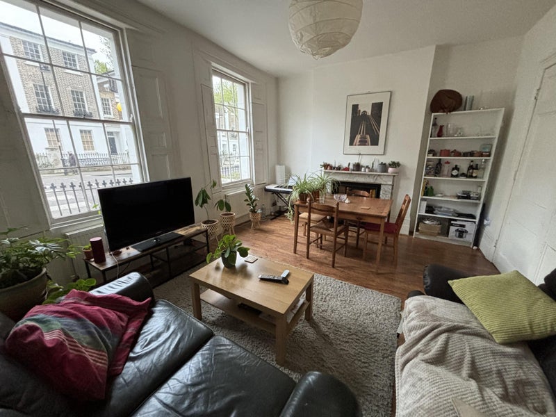 The house is an old Georgian terrace house spread over three floors, which has retained a lot of its original features. The big sash windows (single glazed) and high ceilings make the whole house feel quite airy and open. We have a separate dining room and kitchen with a dishwasher. Beside the WC on the ground floor, you will be sharing a bathroom with one other flatmate. In the summer it is quite nice to sit in the back garden, even though it is north facing. There is also plenty of storage space around the house.