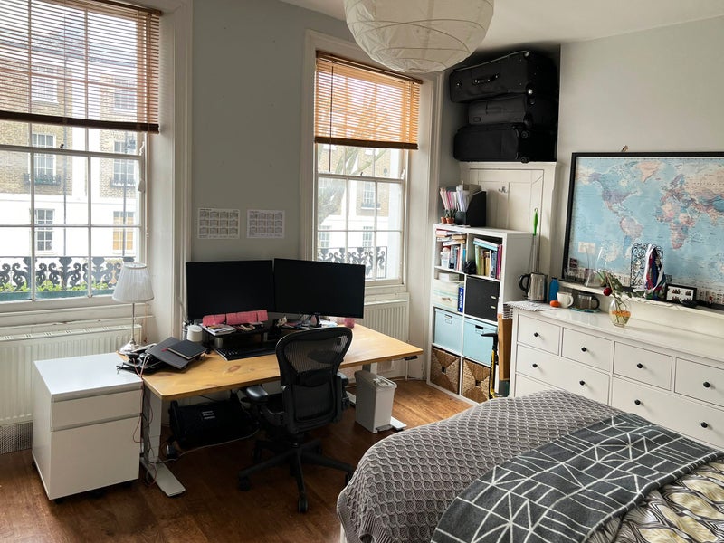 The room itself is on the first floor and gets lots of natural light from south-facing windows. The room faces onto Richmond Avenue. The room will be unfurnished, but there are some shelves in our shed that you are welcome to take and repurpose. The rent is £925 per month, and bills, internet and council tax (band D) come to around £150 per month - this also includes our lovely cleaner who comes every two weeks.