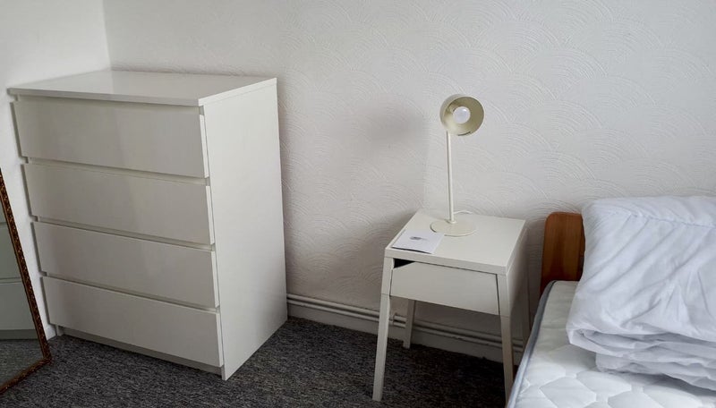 This flat is on the second floor, it is right behind Charing cross hospital (2 minute walk!) so would be great for people working there! Its a 15 minute walk from hammersmith station, 10 minutes from barons court station and 5 minutes walk from lots of lovely pubs and restaurants by the Thames. The landlord may be able to accommodate additional furniture requests. Share the kitchen (which is very spacious) and the bathroom (separate bathroom and toilet which is practical in the mornings!) both of these have separate cabinets for every tenant.