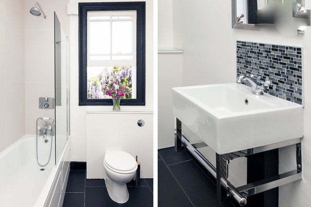 Bathroom: a modern and slick bathroom with cream and black tiles in the bath and the floor areas, a lovely tub to relax in with both a head and hand shower to wash away the bubbles. It also has a toilet, sink, plenty of space for your toiletries, large mirror and a shaving socket.