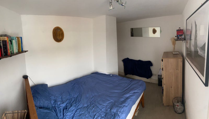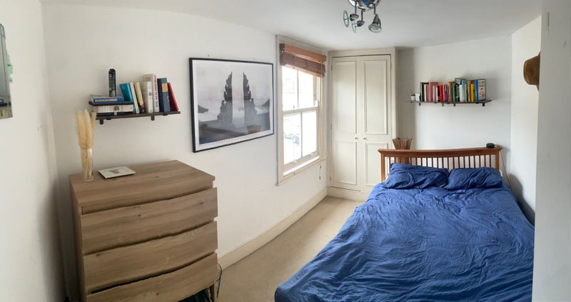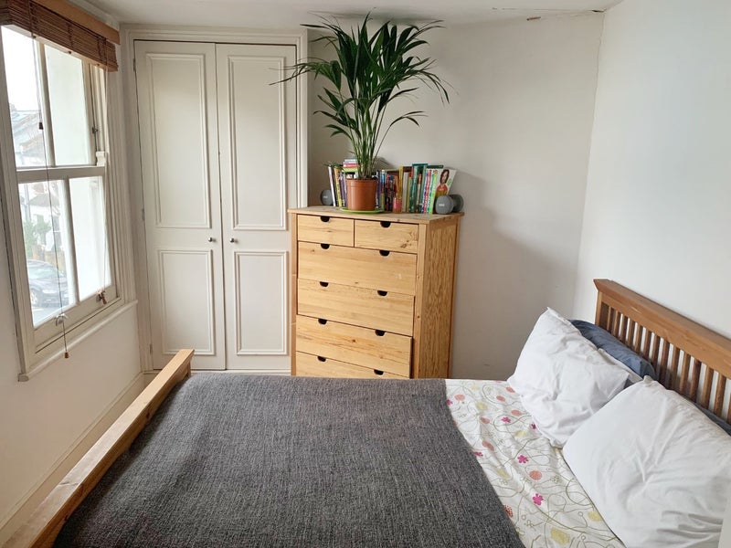 Room is offered with double bed, venetian blind and fitted wardrobe.