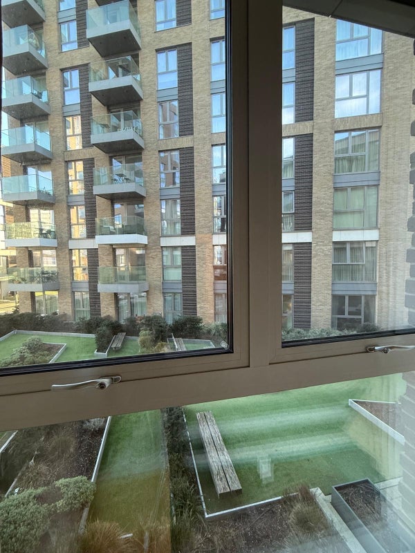 The flat is a new build (2018), so it’s in great condition and has a modern feel. There’s also a communal green space outside for some fresh air.