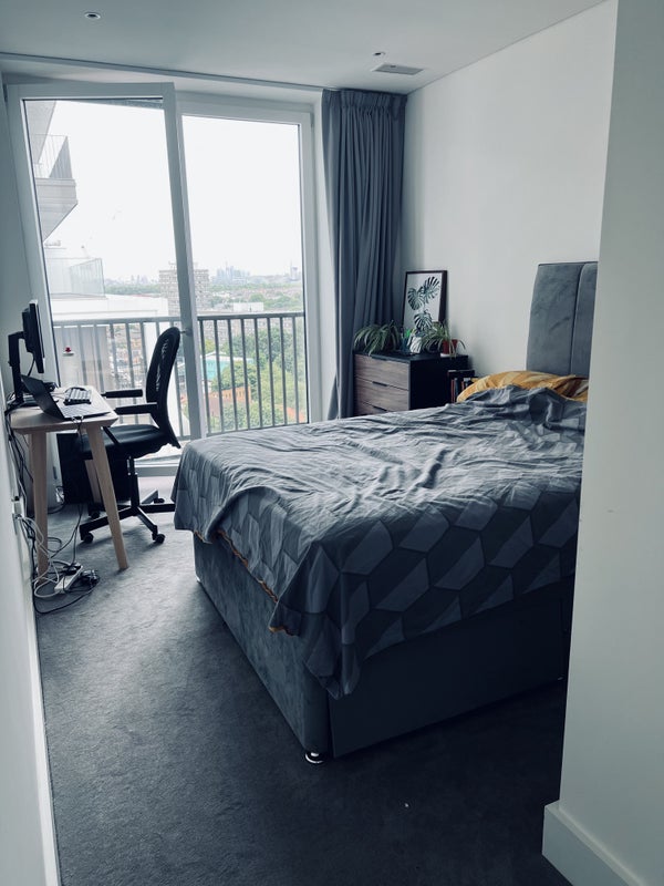 Double bedroom within a 3 bed top-floor apartment in the new riverside Vida Battersea complex in between Wandsworth and Battersea - just a 5 minute walk to Clapham Junction.
