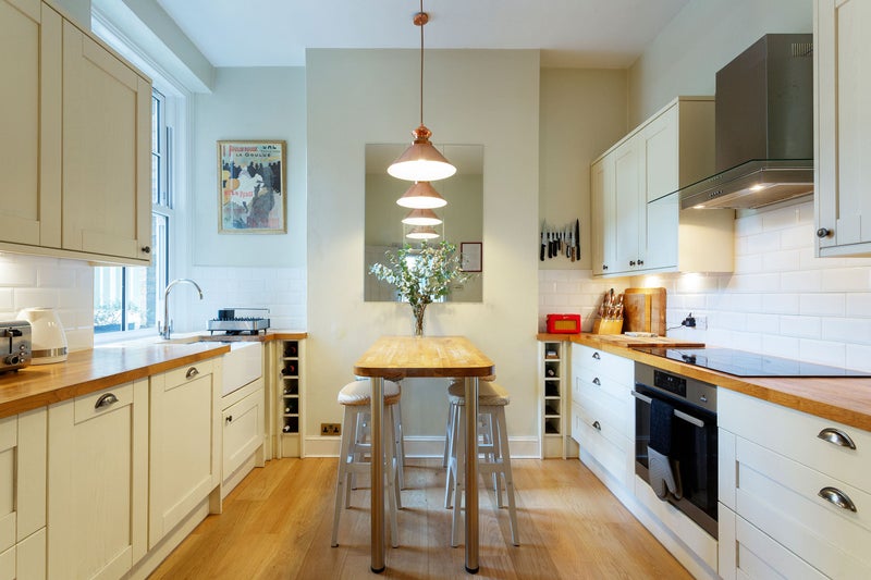 The flat is on the ground floor and has a large sitting room/dining room (table for 10), separate kitchen (table for 4)