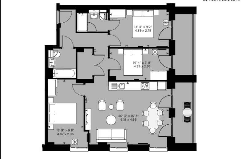 I currently live in a similar two-bedroom, two-bathroom apartment in the same building and will be moving into this three-bedroom flat from 1 April.