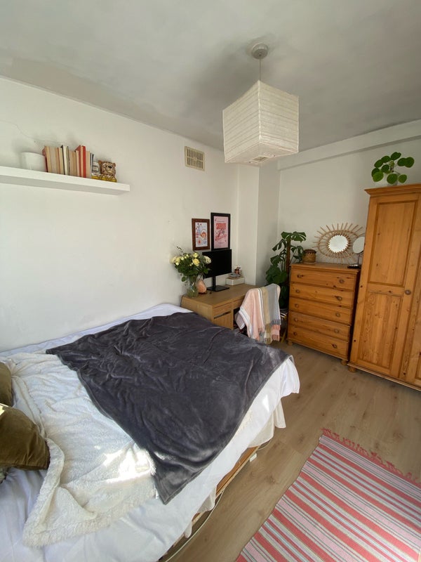 The bedroom avaliable is a bright, reasonable sized double room with a double bed, drawers, a desk and a wardrobe.