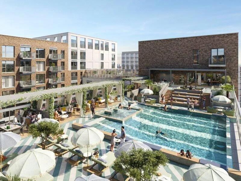 You get a double room with an en-suite that has a shower. Amenities include 2 rooftop pools & 1 hot tub, multiple co-working spaces with closed meeting rooms, a rooftop bar space for private parties, multiple private luxury dining rooms, 24/7 gym, yoga and bike studio, cinema room, rooftop terraces, piano lounge, orangery, courtyard, kids play etc.