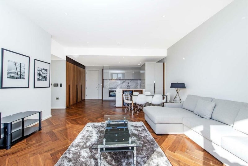 The apartment comprises a smart integrated kitchen, open-plan reception, 2 double bedrooms, good storage, 2 luxury bathrooms (1en-suite) and secure underground parking.
