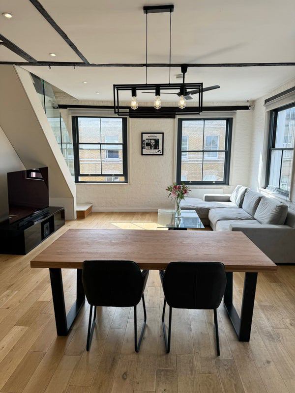 The loft has big industrial windows and high ceilings so it's bright and spacious