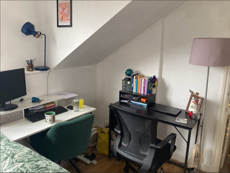 Shared bathroom, nice kitchen with dining room table, large shared living room. There is a desk available with space to work from home in the living room - however, please note that the workspace will be shared 1-2 days a week.
