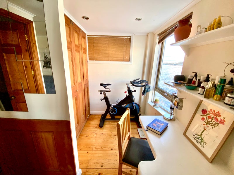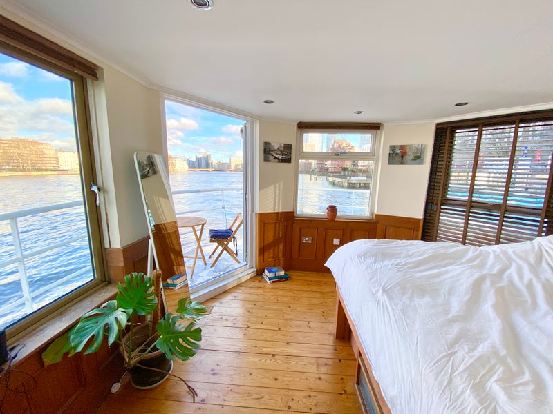 We’ve got a beautiful big 1-bed apartment over 2 floors on a unique, purpose-built houseboat moored just 10 mins from Vauxhall tube & 5 mins from Battersea Power Station.