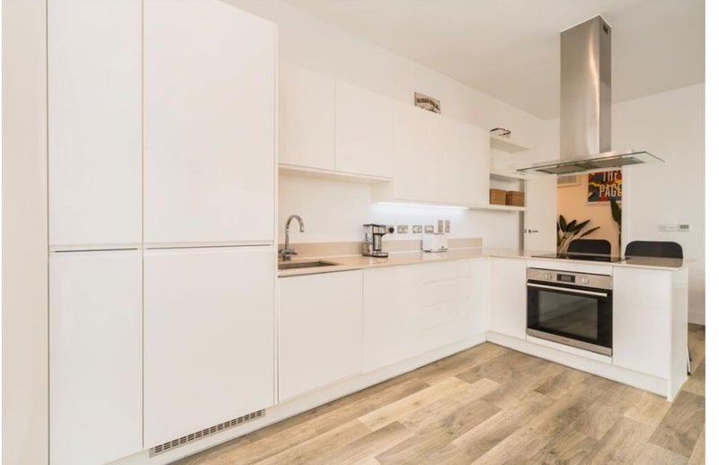The whole flat is super modern and in excellent condition. It’s located at the top of the building, on the 8th floor and is very spacious at 1000 sq foot. It has high ceilings and large windows which let in lots of light.