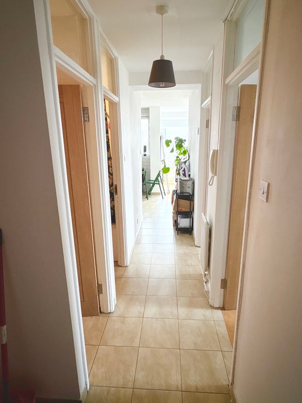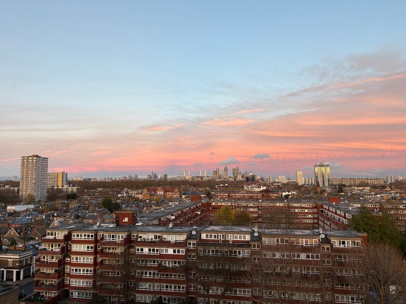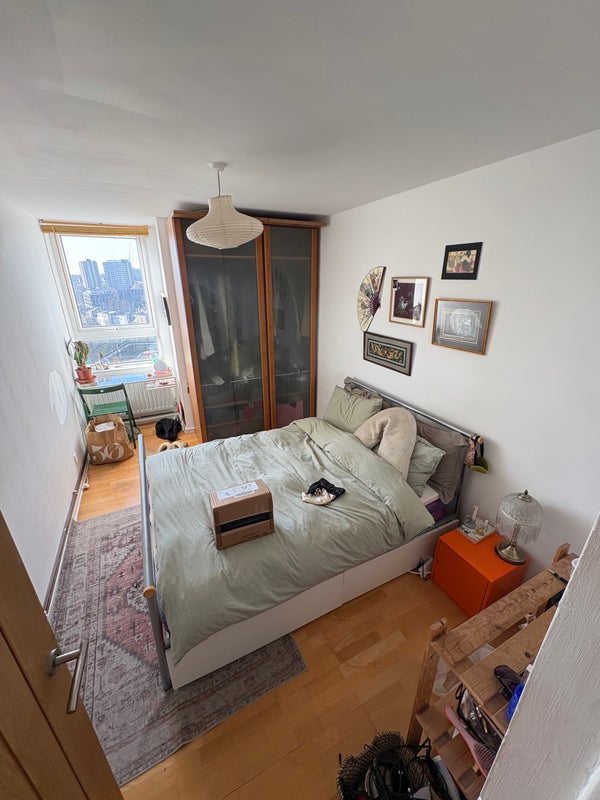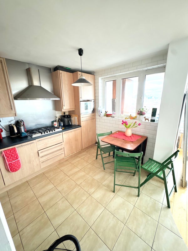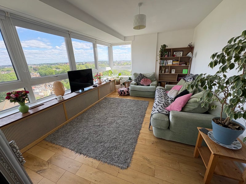 Shared kitchen & living space (with myself) with balcony space and a beautiful view of London.