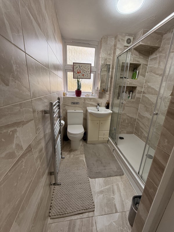 Double bedroom with 2 built in wardrobes, with telly, table chair, double size bed, newly refurbished, shared bathroom and kitchen.
