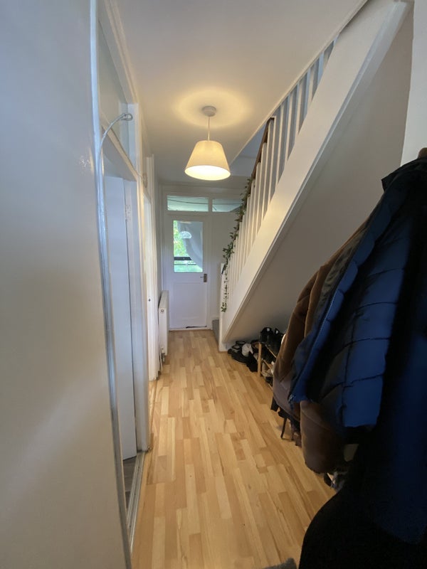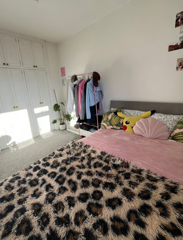 The available room is a bright, south-facing double with plenty of natural light. It comes furnished with a double bed and a built-in wardrobe as well as two small shelves.