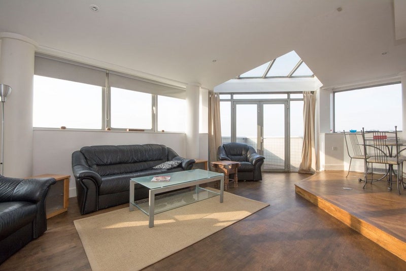 Double bedroom in split level duplex, with breath-taking panoramic views of London skyline.