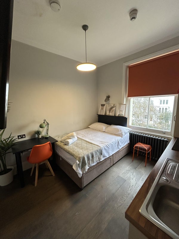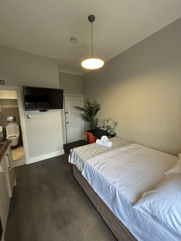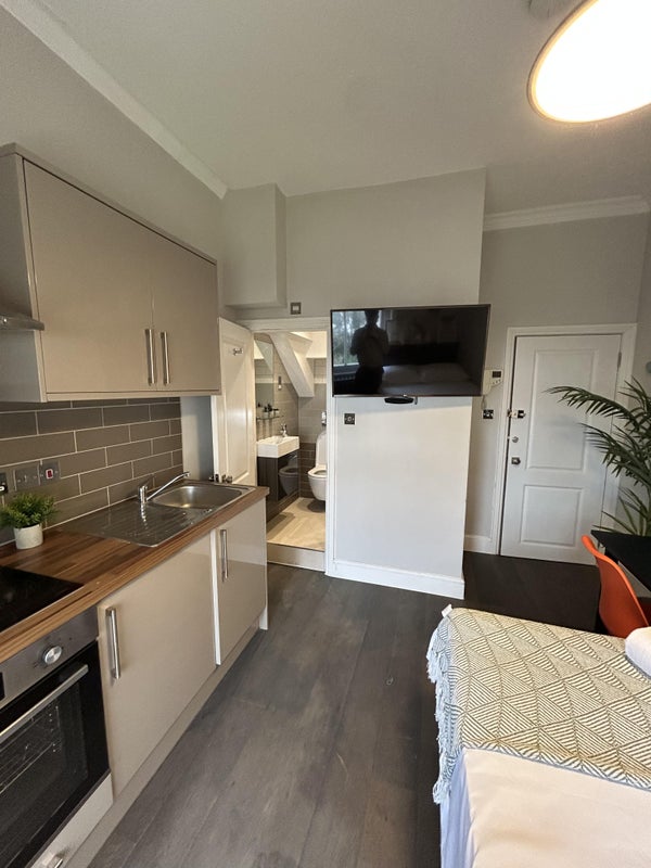The studio apartment benefits from an integrated kitchen, double bed, wardrobe, desk space, private en-suite. The rent also includes, all utilties, gas, electric, water, WIFI and council tax. You only worry about 1 payment which you pay month on month for the duration of your stay.