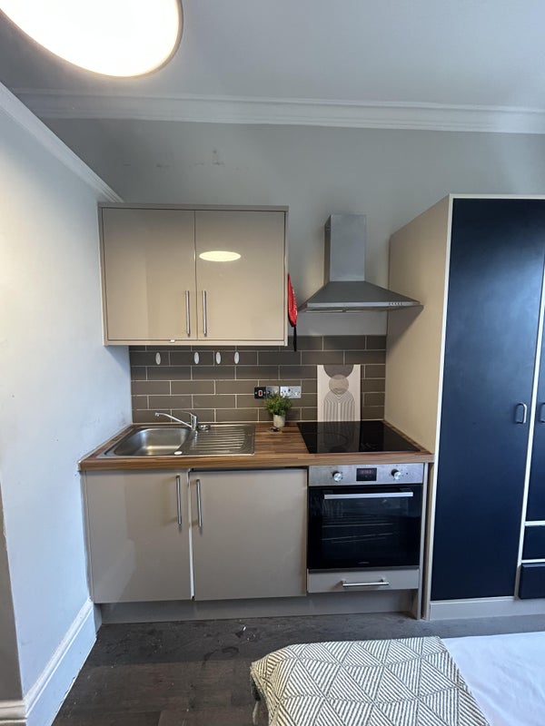 The studio apartment benefits from an integrated kitchen, double bed, wardrobe, desk space, private en-suite. The rent also includes, all utilties, gas, electric, water, WIFI and council tax. You only worry about 1 payment which you pay month on month for the duration of your stay.