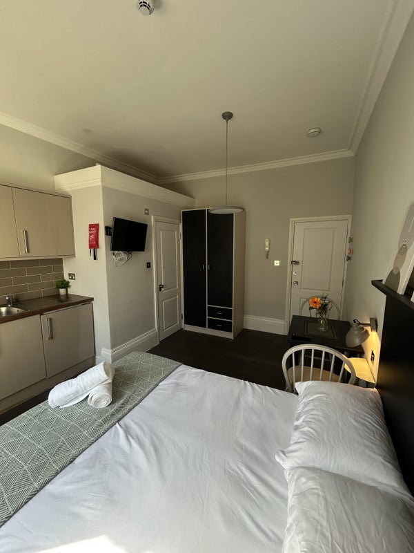 The studio apartment benefits from an integrated kitchen, double bed, private en-suite. The rent also includes, all utilties, gas, electric, water, WIFI and council tax. You only worry about 1 payment which you pay month on month for the duration of your stay.