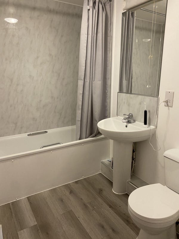 There are 2 bathrooms in the flat, shared with two working male professionals (both 22).