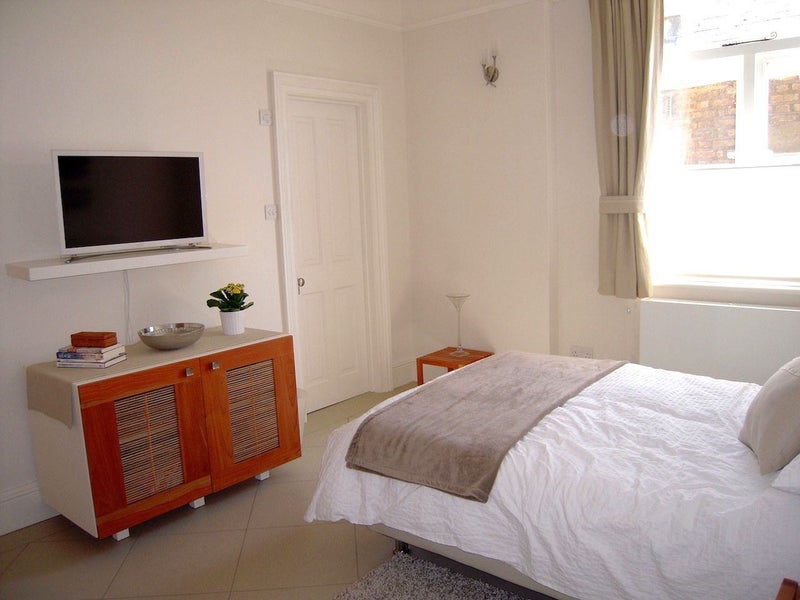 The double bed has a comfortable orthopaedic mattress and padded leather headboard. Your Samsung Smart TV is brand new so you can watch movies or browse the internet from your bed ! NB - There is superfast WiFi throughout the flat.