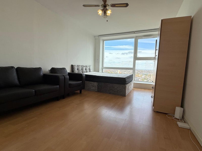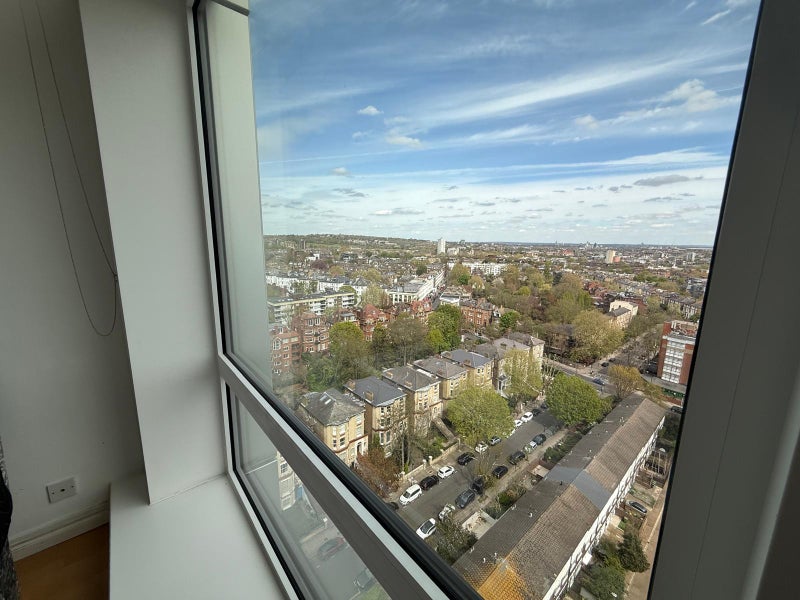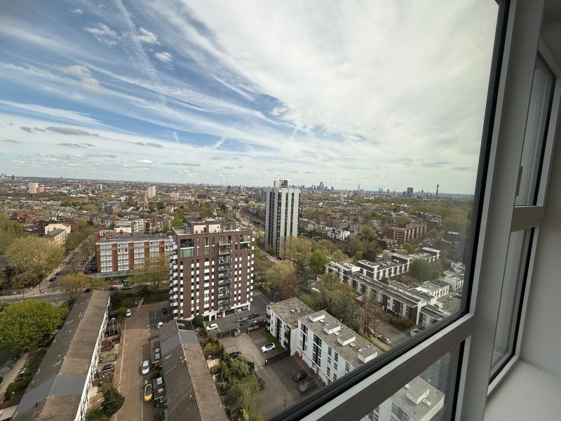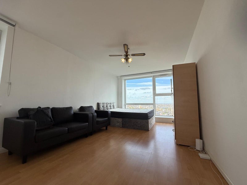 A stunning, exceptionally large double room set within a high-floor flatshare, offering panoramic views across the London skyline and an abundance of natural light. This spacious room is ideal for professionals seeking comfort, privacy and a sense of openness, with ample storage, laminate wood flooring and a bright, modern feel throughout.